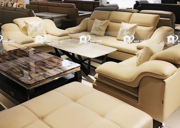 Vải bọc: là PVC cao cấp không thấm nước nên dễ vệ sinh, bề mặt nhẵn khó bám bụi bẩn, có sự đàn hồi tốt tạo kiểu dáng sofa mềm mại.